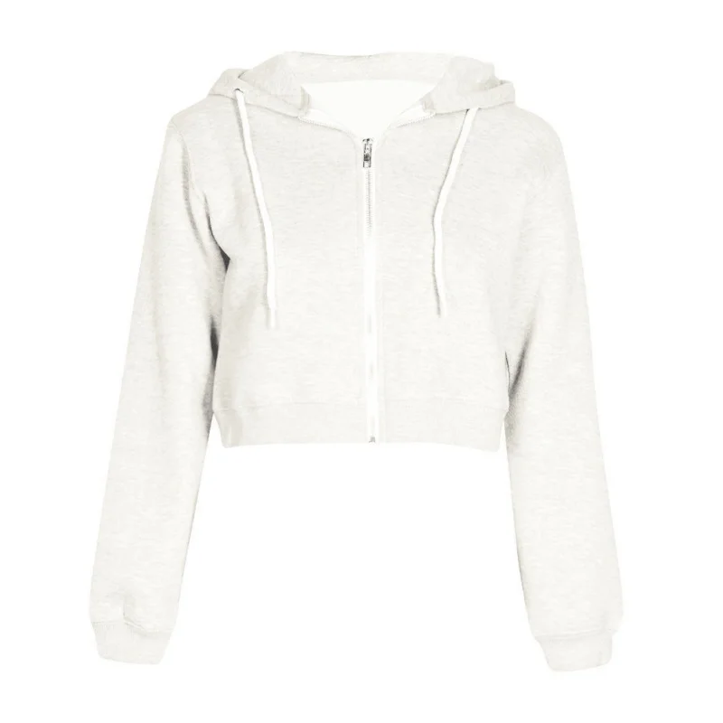 Best Crop Top Hoodies Women Long Sleeve Sweatshirts Drawstring Zip Up Fashion Hoodie Streetwear Black Wh