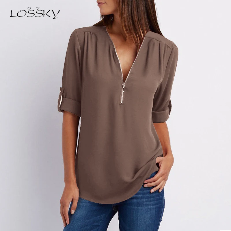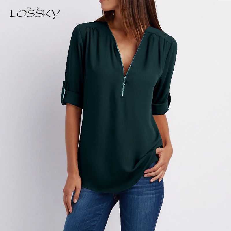 Promo CROPKOP fashion v neck short sleeve summer chiffon womens tops and blouses 2018 zipper plus size 5X