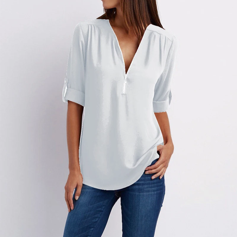 Best CROPKOP fashion v neck short sleeve summer chiffon womens tops and blouses 2018 zipper plus size 5X