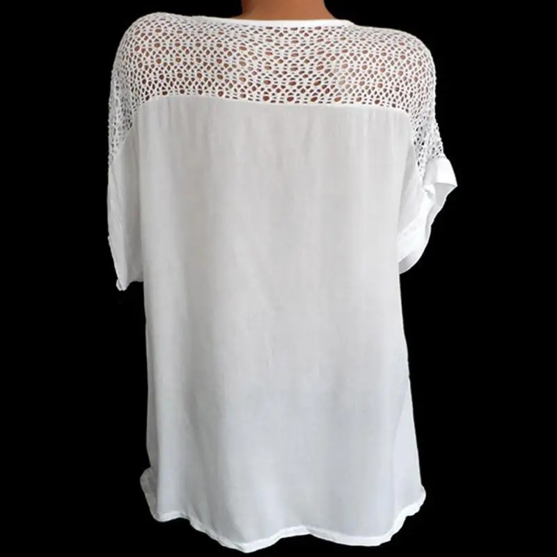 New Women Blouse Plus Size XL-5XL Bat's wing sleeved V neck Tops shirt Fashion Lace Edge vestidos casua