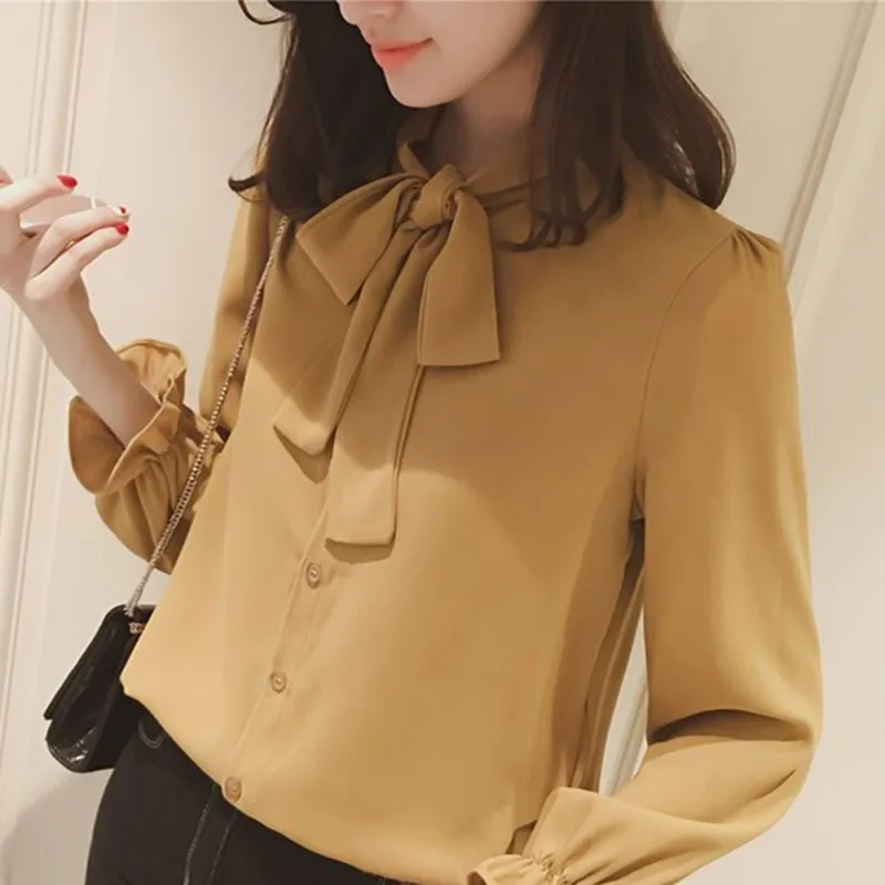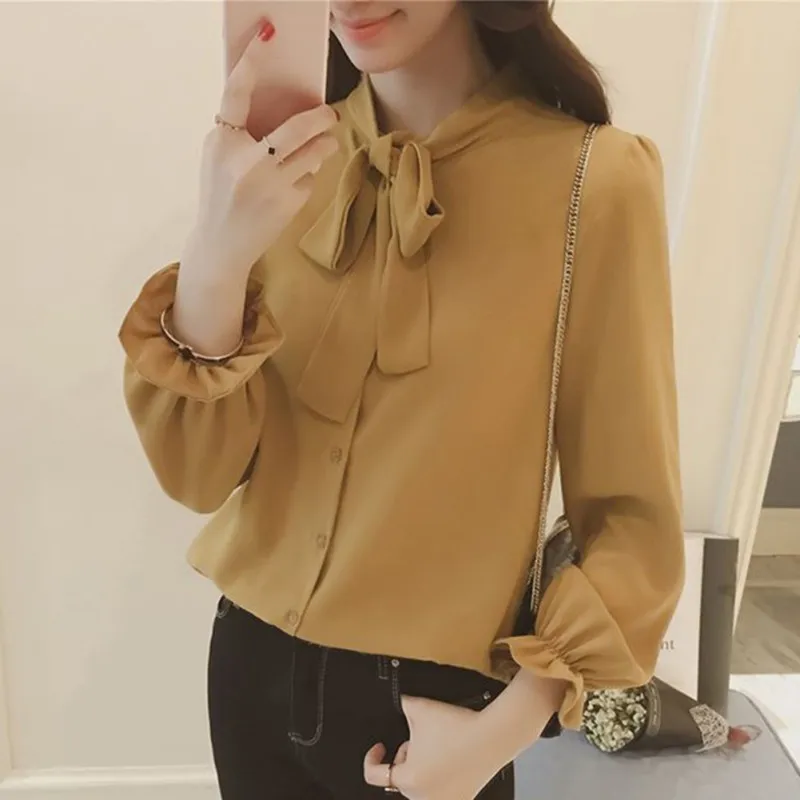 Promo Hot Seller Long Sleeve Blouse For Work Spring Summer Women Blouses Tops Solid White Female Clothing