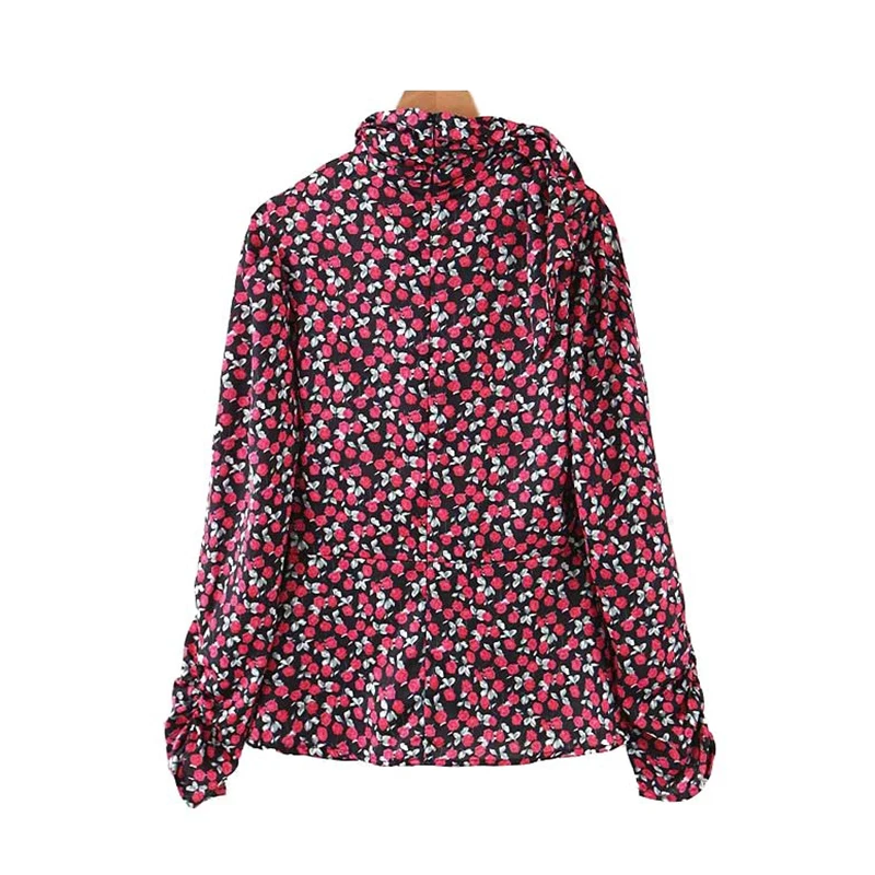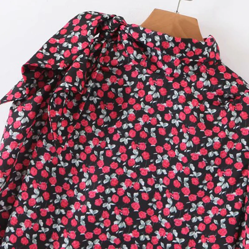 New Vintage Stylish Office Lady Floral Print Tops Women Blouses 2019 Fashion Bow Tie Long Sleeve Back Z