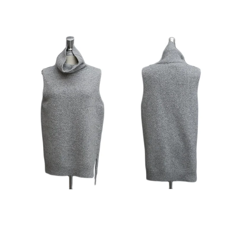 New Women's Knitted Angora Rabbit Cashmere Wool Turtleneck Vest Side Slit Winter Female Wool Sweater Sl
