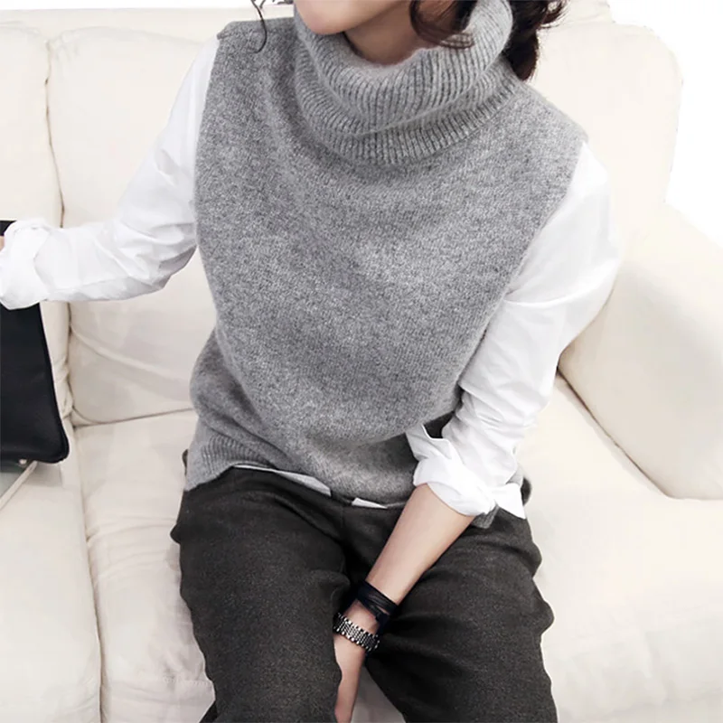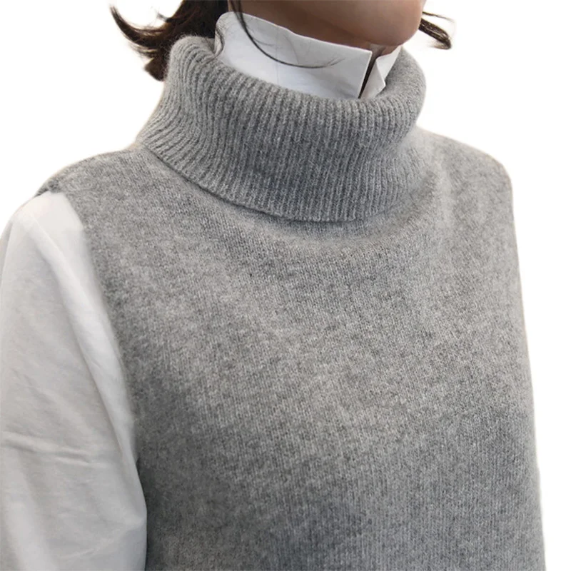 Promo Women's Knitted Angora Rabbit Cashmere Wool Turtleneck Vest Side Slit Winter Female Wool Sweater Sl