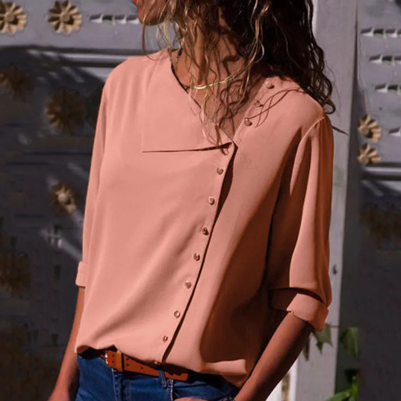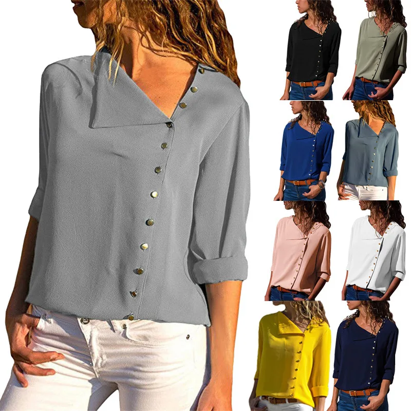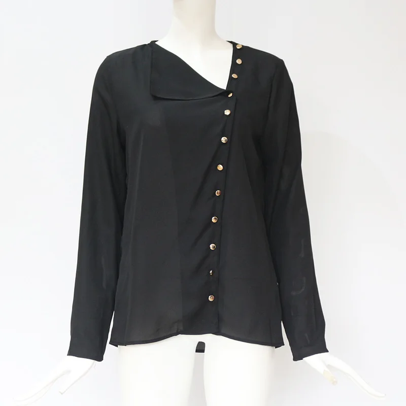 Promo womens tops and blouses Button irregular diagonal collar long sleeve loose female chiffon shirt wom