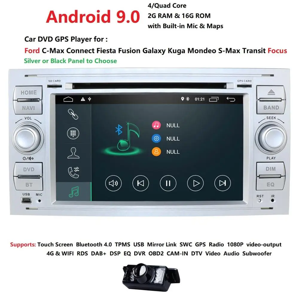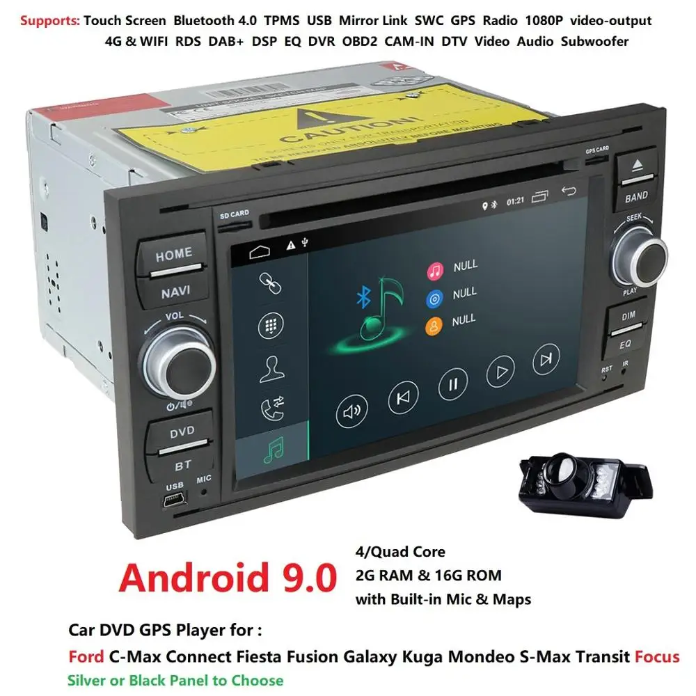 Best Car DVD Player Android 9.0 DAB+2din In Dash For Ford Transit Focus Connect S-MAX Kuga Mondeo With Q