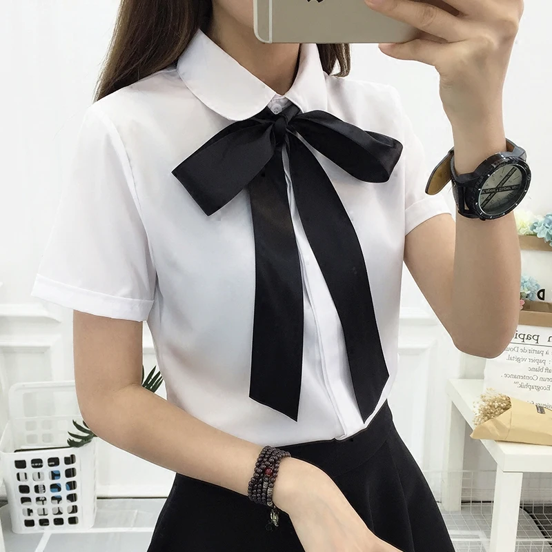Promo Cheap 2019 Fashion female elegant bow tie white blouses Chiffon turn down collar shirt Ladies tops