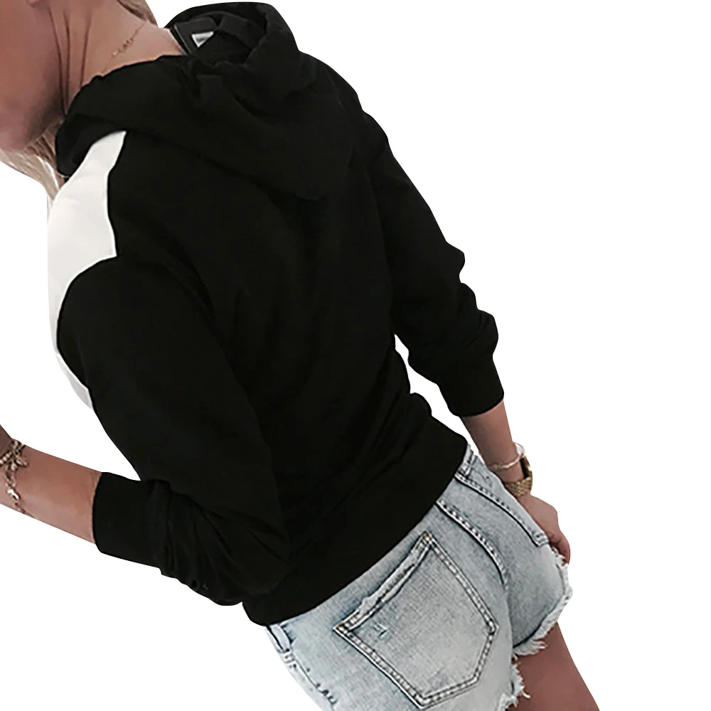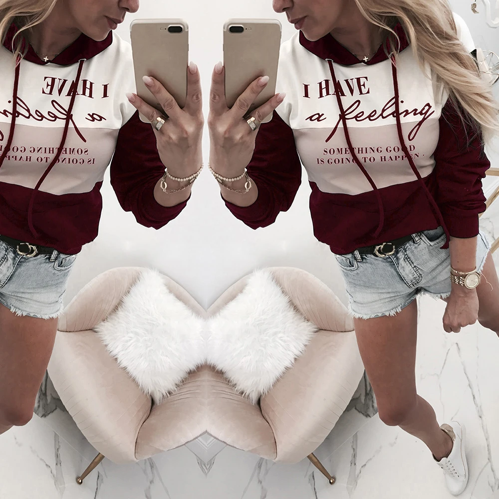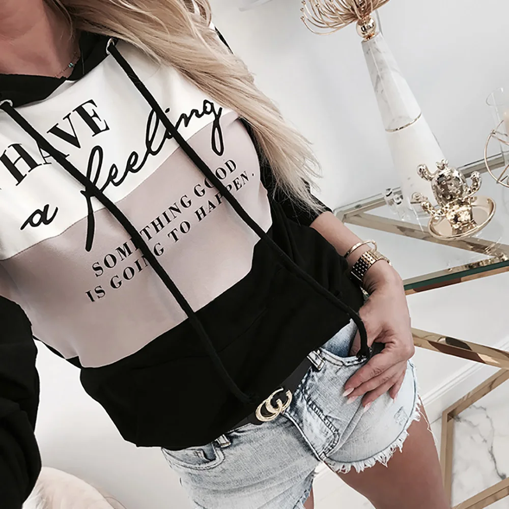 Best Ladies Hoodies Sweatshirt Contrast Color Letter Print Pullover Hoodies Women Casual sudadera mujer