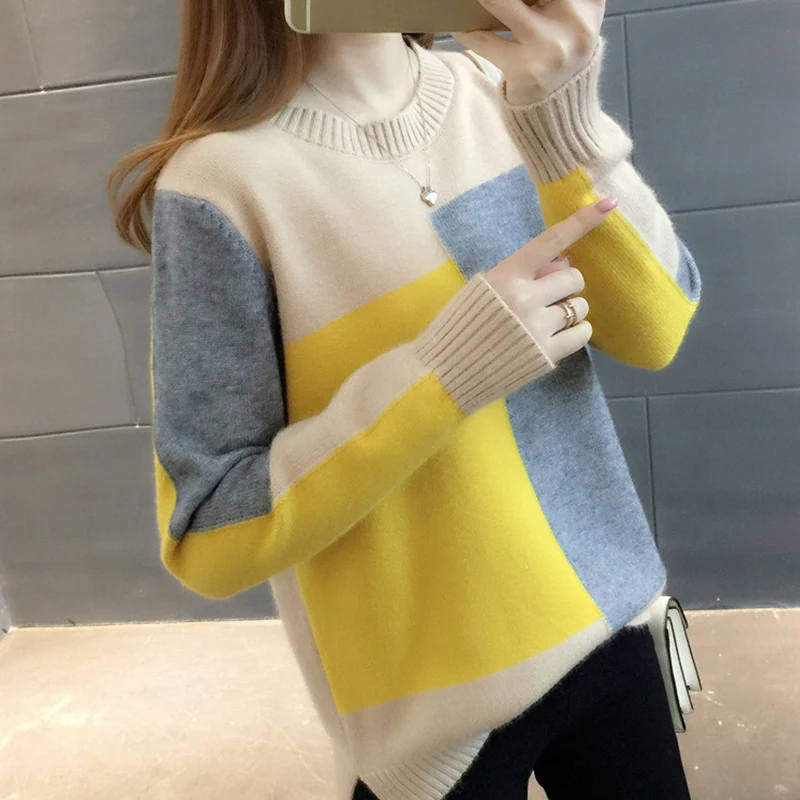 New TIGENA Contrast Color Winter Sweater Women 2019 Long Sleeve Jumper Women Sweater and Pullover Knitt