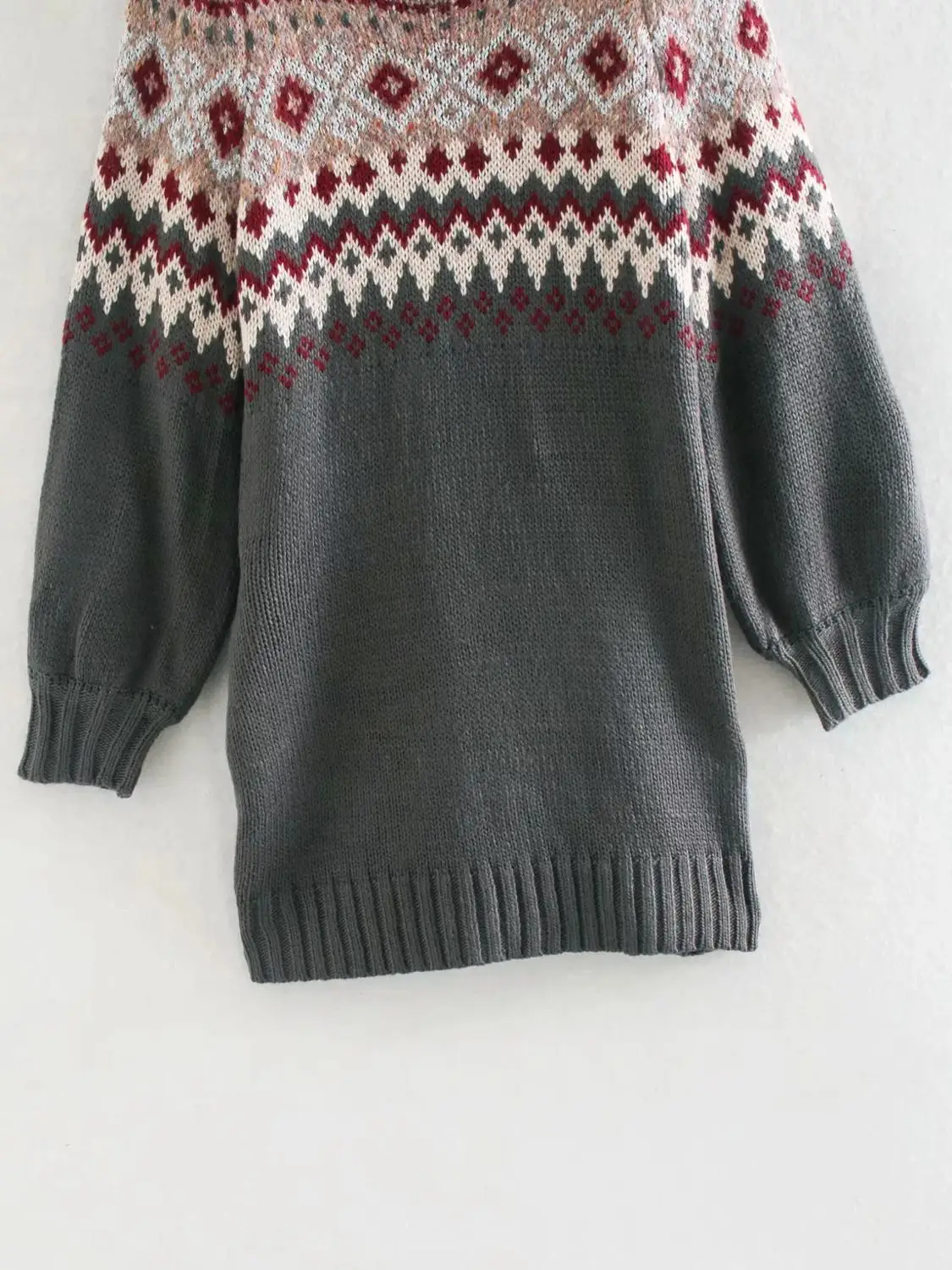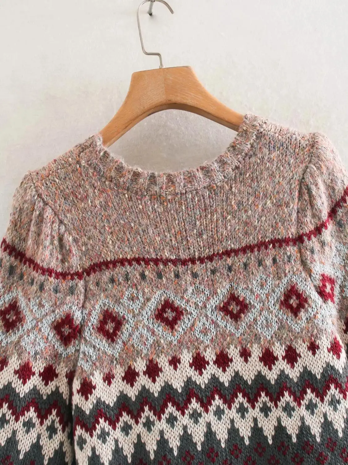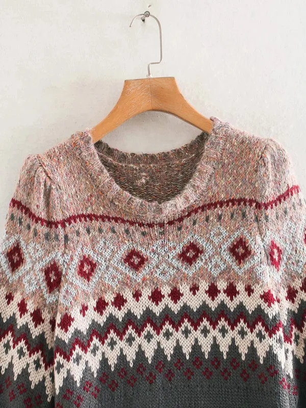Best Withered england style vintage Jacquard weave o-neck oversize winter sweaters women pull femme swea