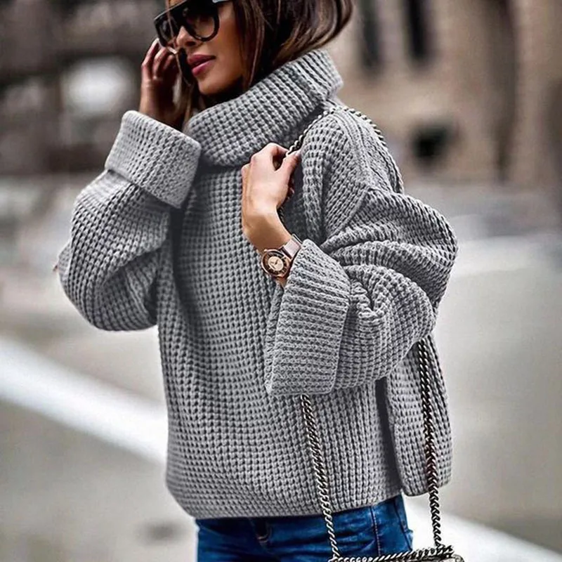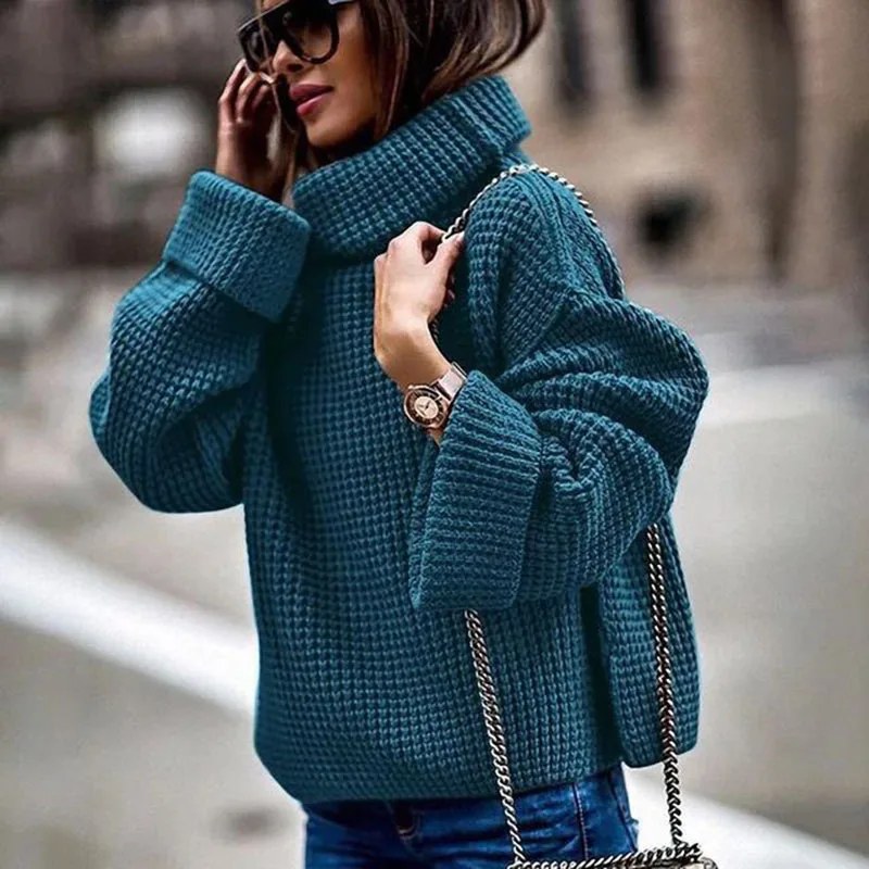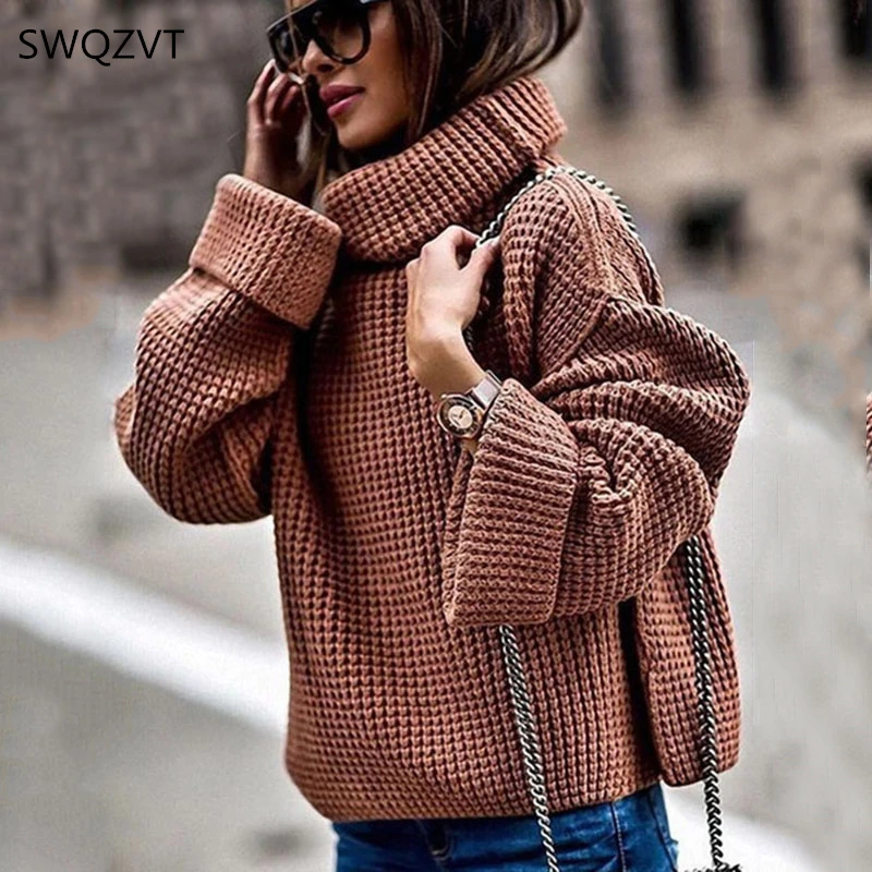 Best Turtleneck Women Sweater 2019 Winter Warm Loose Knitted Women Pullovers Casual Long Sleeve Ladies J
