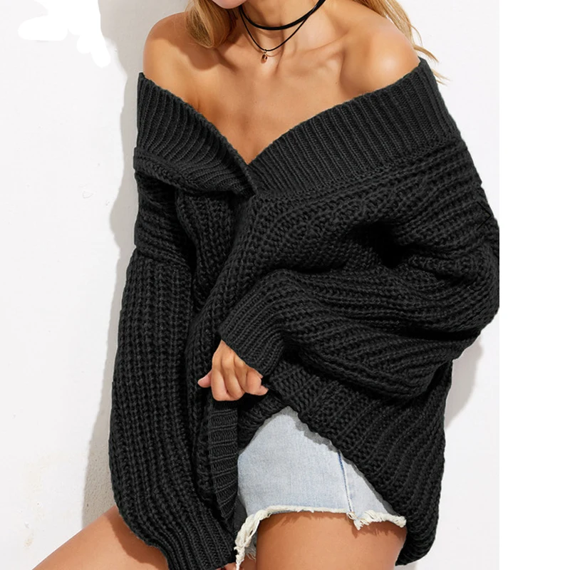Promo Warm Winter Fashion for Women Sweaters Knitwear Off the Shoulder Loose long sleeve V Neck Drop Shou