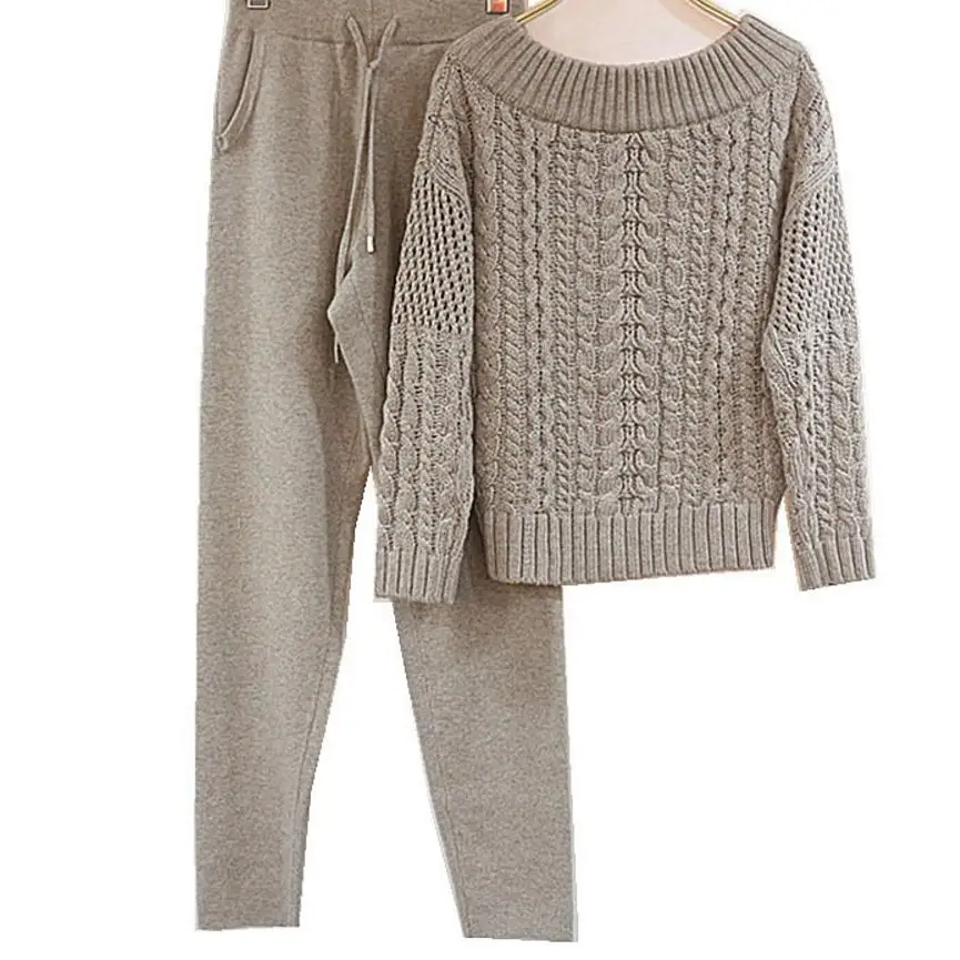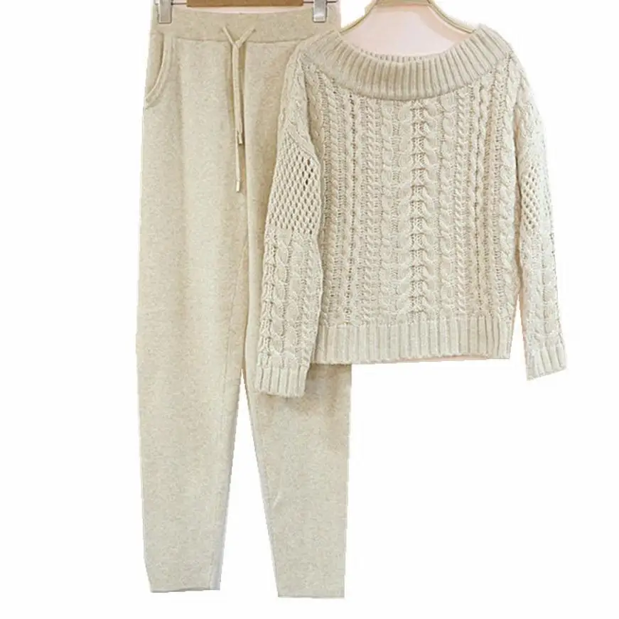 New Winter Woolen and Cashmere Knitted warm Suit Round neck tattoo Collar Sweater + Mink Cashmere Trous