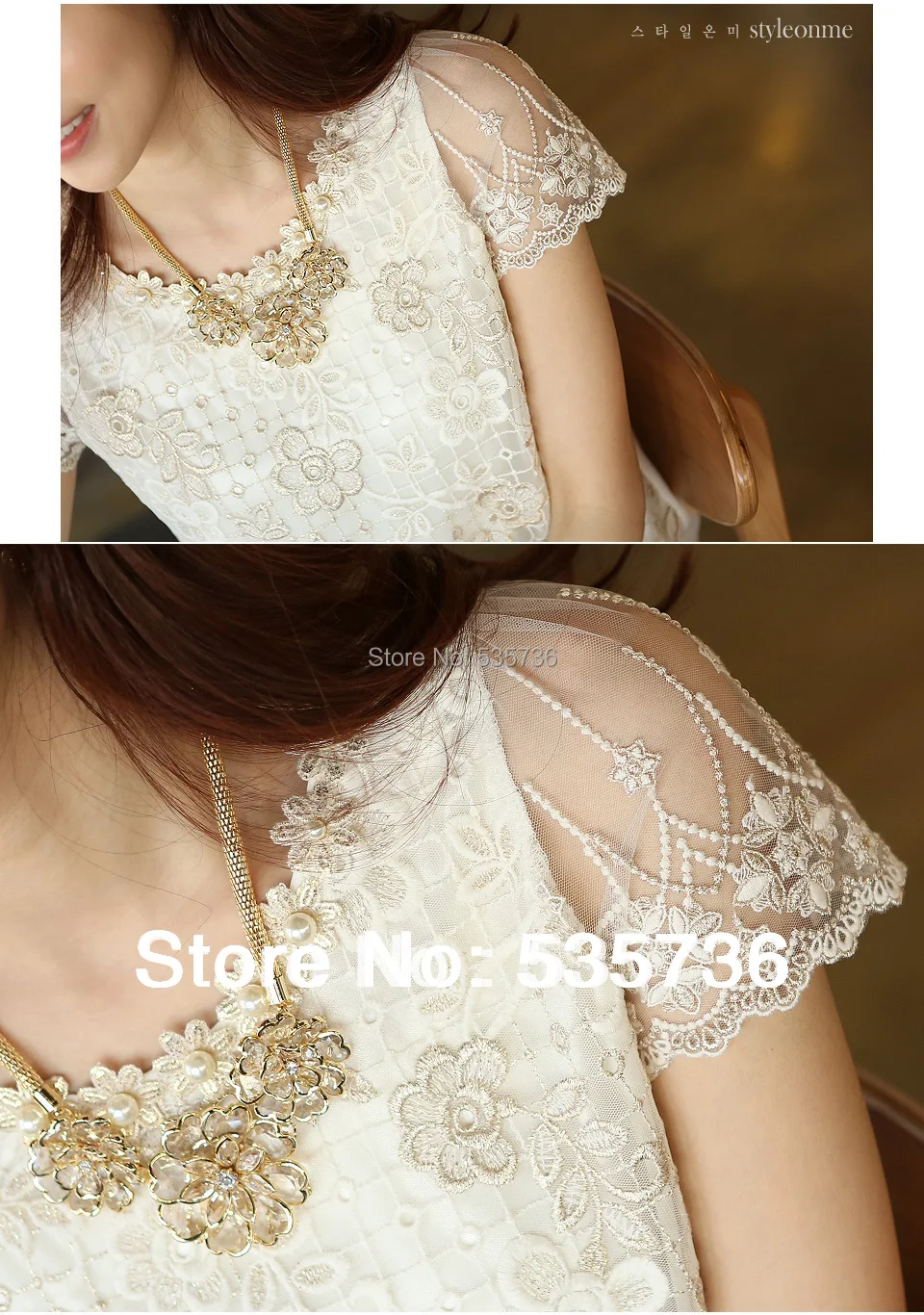 Promo 2018 women's chiffon shirt lace top beading embroidery o-neck blouse Elegant women Lace blous shirt