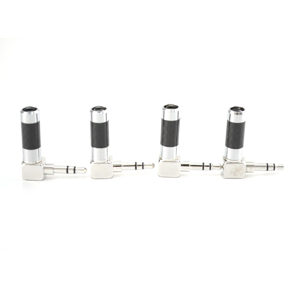 Promo 4pcs/LOT Carbon Fiber silver plated 3poles right angle stereo Audio cable adapter Solder
