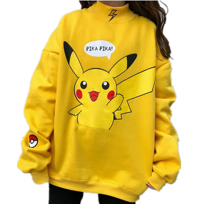Buy Autumn 2019 Women Hoodies Turtleneck Pikachu Print Sweatshirts Harajuku Fashion Kawaii Tops Cartoon